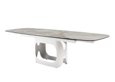 Стол обеденный CALGARY станет оригинальным дополнением любой современной обеденной зоны. Столешница изделия изготовлена из качественной керамики, устойчивой к царапинам и механическим повреждениям. Ножки стола выполнены из окрашенного металла. За сложенным столом с комфортом могут разместиться 6 человек, за разложенным - от 8 персон.